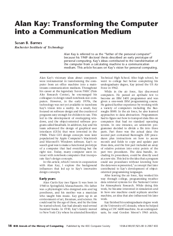 This is Susan Barnes’ paper on Alan Kay’s computer work as a
