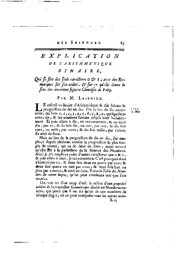 Leibniz - Arithmétique Binaire —