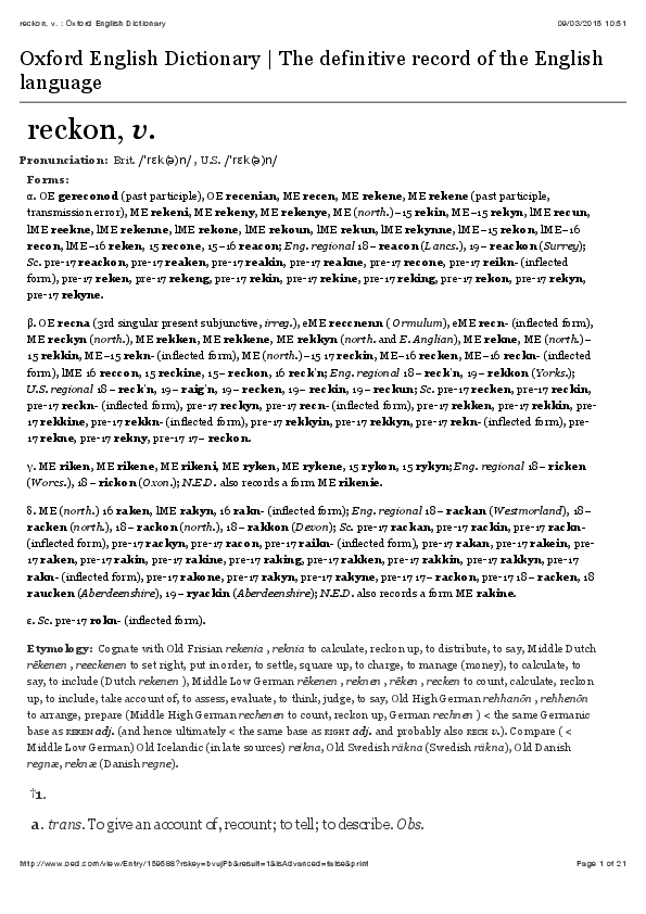 OED entry for reckon —
