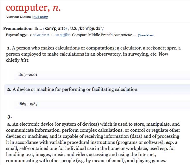 OED dictionary entry for Computer