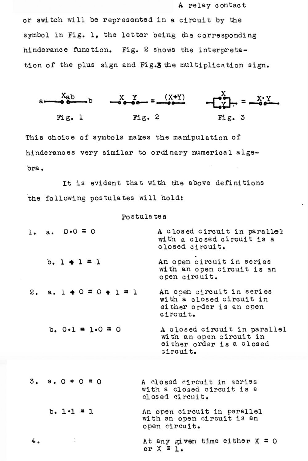 -- Claude Shannon, A symbolic analysis of relay and switching circuits, MIT M.Sc Thesis